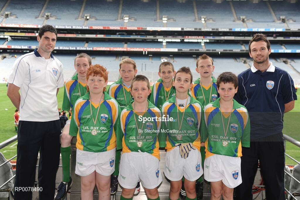 28 September 2009; Vhi GAA Cúl Day Out 2009, Ross McConnell, Dublin footballer, left, and Gareth Doyle, Wicklow footballer. Croke Park, Dublin. Picture Credit: Stephen McCarthy / SPORTSFILE