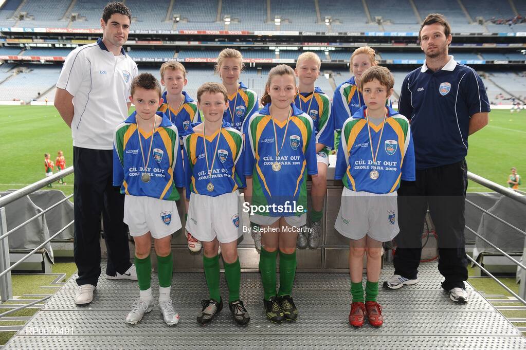 28 September 2009; Vhi GAA Cúl Day Out 2009, Dublin footballer Ross McConnell and Wicklow footballer Gareth Doyle. Croke Park, Dublin. Picture Credit: Stephen McCarthy / SPORTSFILE