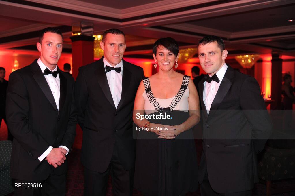 16 October 2009; Carolan Lennon, Consumer Marketing Director, Vodafone, with Dublin footballers, from left, Barry Cahill, Ciaran Whelan and Alan Brogan during the 2009 GAA All-Stars Awards, sponsored by Vodafone. Citywest Hotel, Conference, Leisure & Golf Resort, Dublin. Picture credit: Ray McManus / SPORTSFILE