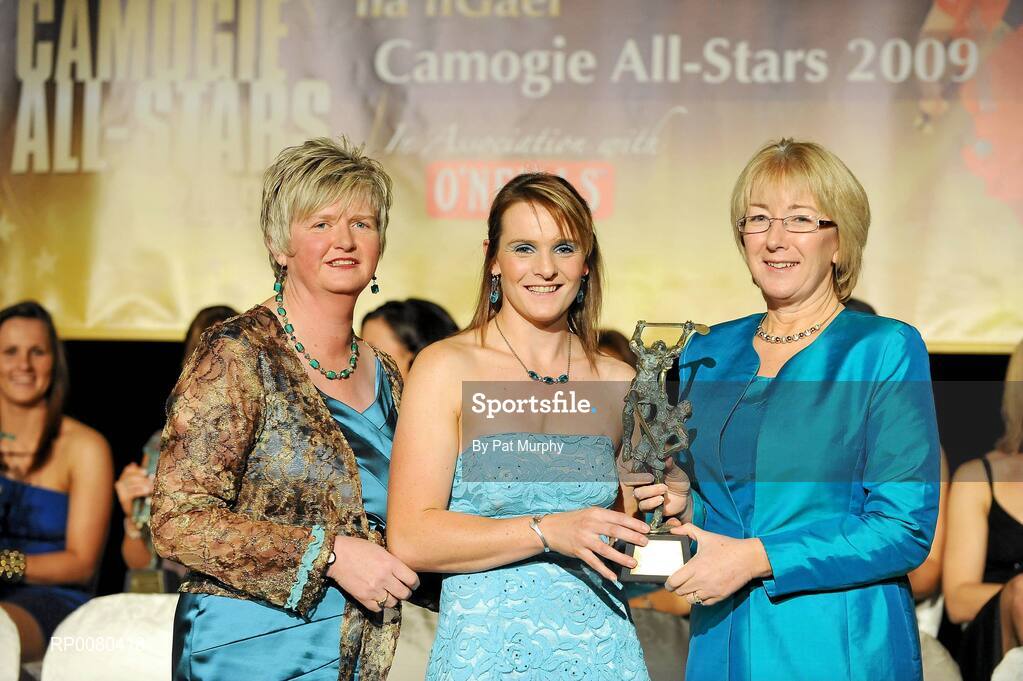 7 November 2009; Briege Corkery, of Cork, is presented with her Camogie All-Star award by Joan O'Flynn, President of the Camogie Association, and Mary Hanafin T.D., Minister for Social and Family Affairs, during the 2009 Camogie All-Stars Awards, in association with O'Neills. Citywest Hotel, Conference, Leisure & Golf Resort, Dublin. Picture credit: Pat Murphy / SPORTSFILE