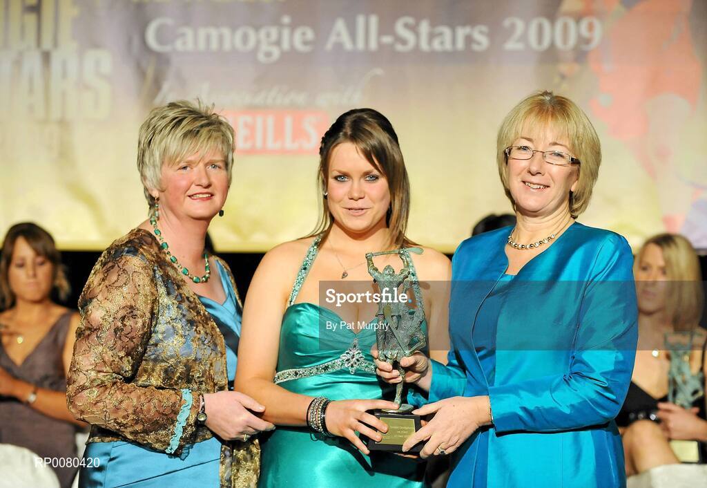 7 November 2009; Katie Power, of Kilkenny, is presented with her Camogie All-Star award by Joan O'Flynn, President of the Camogie Association, and Mary Hanafin T.D., Minister for Social and Family Affairs, during the 2009 Camogie All-Stars Awards, in association with O'Neills. Citywest Hotel, Conference, Leisure & Golf Resort, Dublin. Picture credit: Pat Murphy / SPORTSFILE