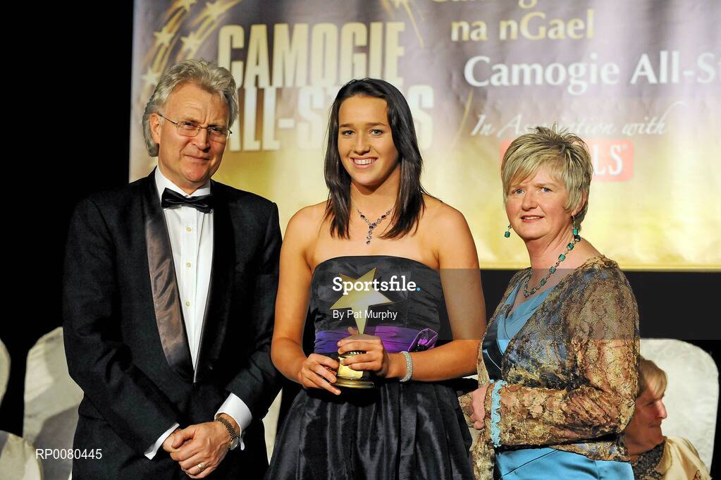 7 November 2009; Denise Gaul, Kilkenny, is presented with her Leinster Young Player of the Year award by Tony Towell, MD of O'Neills, and Joan O'Flynn, President of the Camogie Association, during the 2009 Camogie All-Stars Awards, in association with O'Neills. Citywest Hotel, Conference, Leisure & Golf Resort, Dublin. Picture credit: Pat Murphy / SPORTSFILE