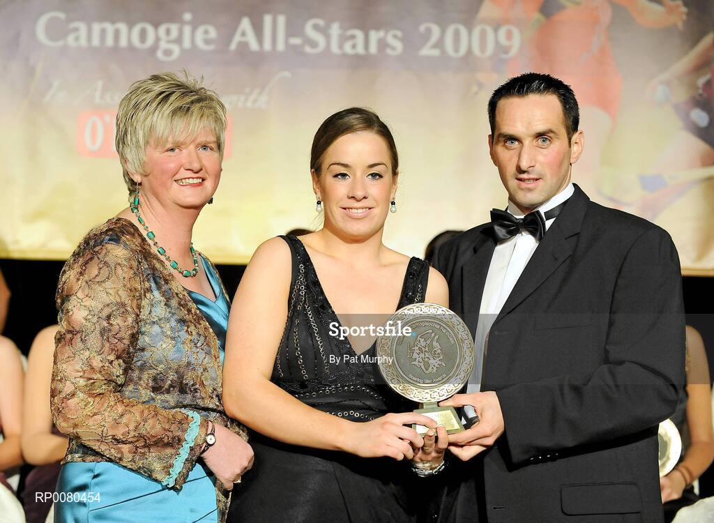 7 November 2009; Louise Donoghue, Meath, is presented with her Camogie Soaring Star award by Joan O'Flynn, President of the Camogie Association, and Paul Brady, three times World Handball Champion, during the 2009 Camogie Soaring Star Awards, in association with O'Neills. Citywest Hotel, Conference, Leisure & Golf Resort, Dublin. Picture credit: Pat Murphy / SPORTSFILE