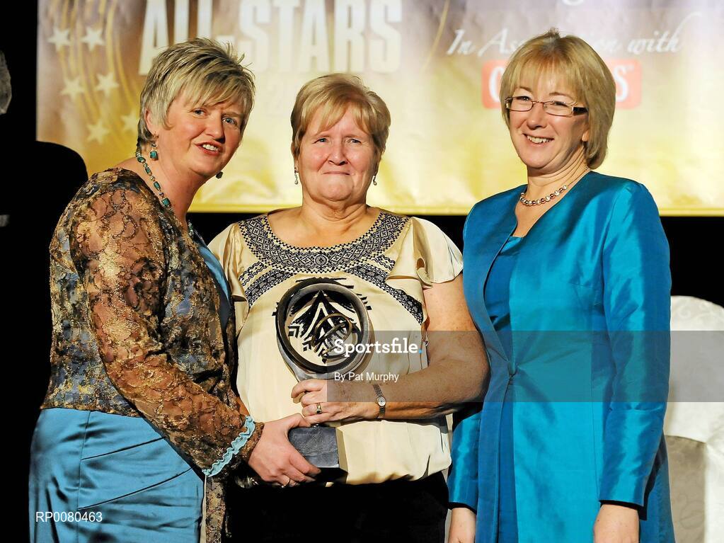7 November 2009; Mary Herald, Antrim, Administrator of the Year, is presented with her Administrator of the year award by Joan O'Flynn, President of the Camogie Association, and Mary Hanafin T.D., Minister for Family and Social Affairs, during the 2009 Camogie All-Stars Awards, in association with O'Neills. Citywest Hotel, Conference, Leisure & Golf Resort, Dublin. Picture credit: Pat Murphy / SPORTSFILE