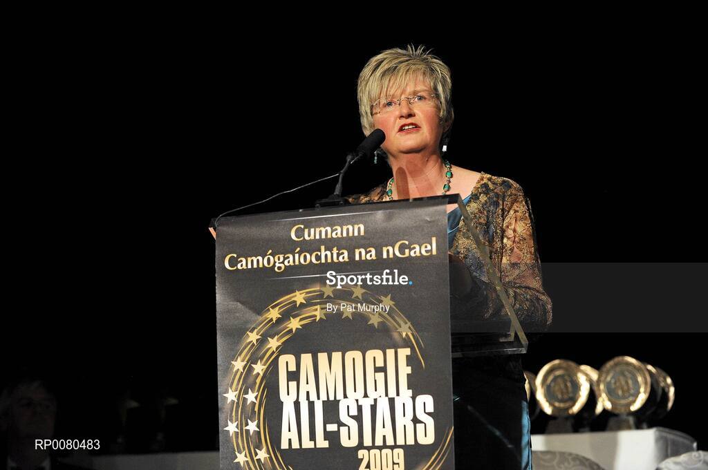 7 November 2009; Joan O'Flynn, President of the Camogie Association, speaking during the 2009 Camogie All-Stars Awards, in association with O'Neills. Citywest Hotel, Conference, Leisure & Golf Resort, Dublin. Picture credit: Pat Murphy / SPORTSFILE